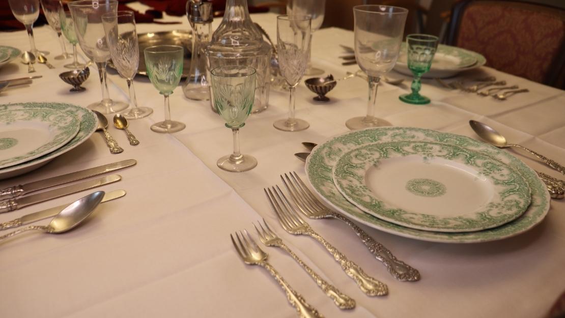 Matbordet i en matsal skulle vara klätt i vit linneduk med levande ljus, bordsplatå, kandelabrar, frukt- och konfektskålar, flera dryckesglas och enhetliga silverbestick hos alla. Allt det här kan hittas i Hammarlindska samlingen. Men denna högtidliga matsalen användes inte hela tiden och speciellt under jugendperioden skapades mer enkla former för matbordet. Båda epoker kring sekelskiftet kan ses i Hammarlindska samlingen, en mix av prål och enkelhet.